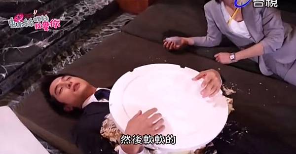 羅思儀(賴雅妍)因為高跟鞋鞋跟斷了,不小心跌倒,將手上的22吋蛋糕整個砸到高丞寬(邱澤)的身上,兩人跌倒在地上......