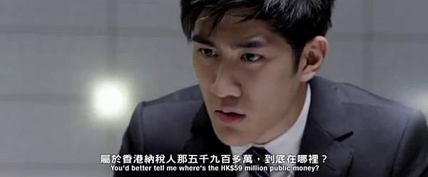劉傑輝(郭富城飾)跟金庫主管見面詢問是否有要求徐永基(錢嘉樂飾)要將剩下的錢先繳回金庫,金庫主管的回答是否定的。
