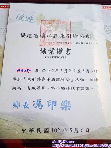 每個人都有一張「東引外島軍旅體驗營結業證書」喔!~